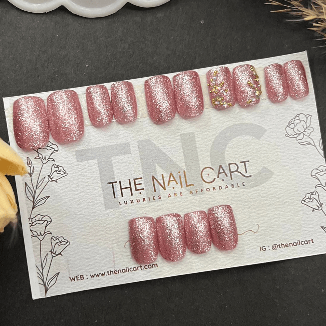 🎨 Design: Rose gold glitter with stone detailing