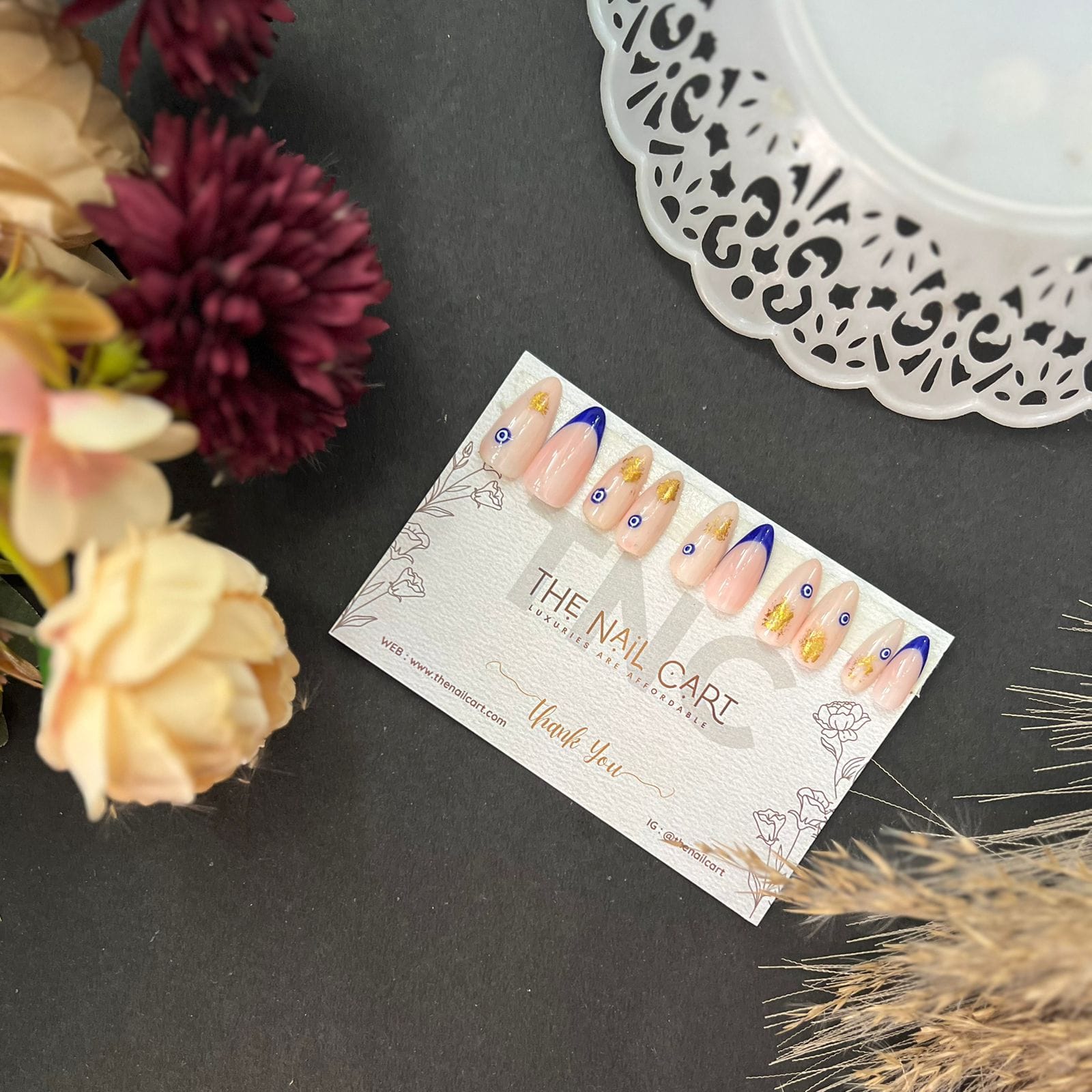 Elevate your nail aesthetics with our French Evil Eye – TNC Press-On Nails, designed for the bold & elegant women. The subtle nude base paired with French and evil eye detailing gives a sleek, modern edge perfect for both everyday chic and special occasions.
