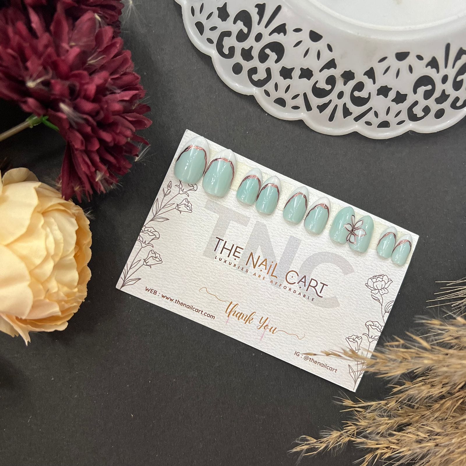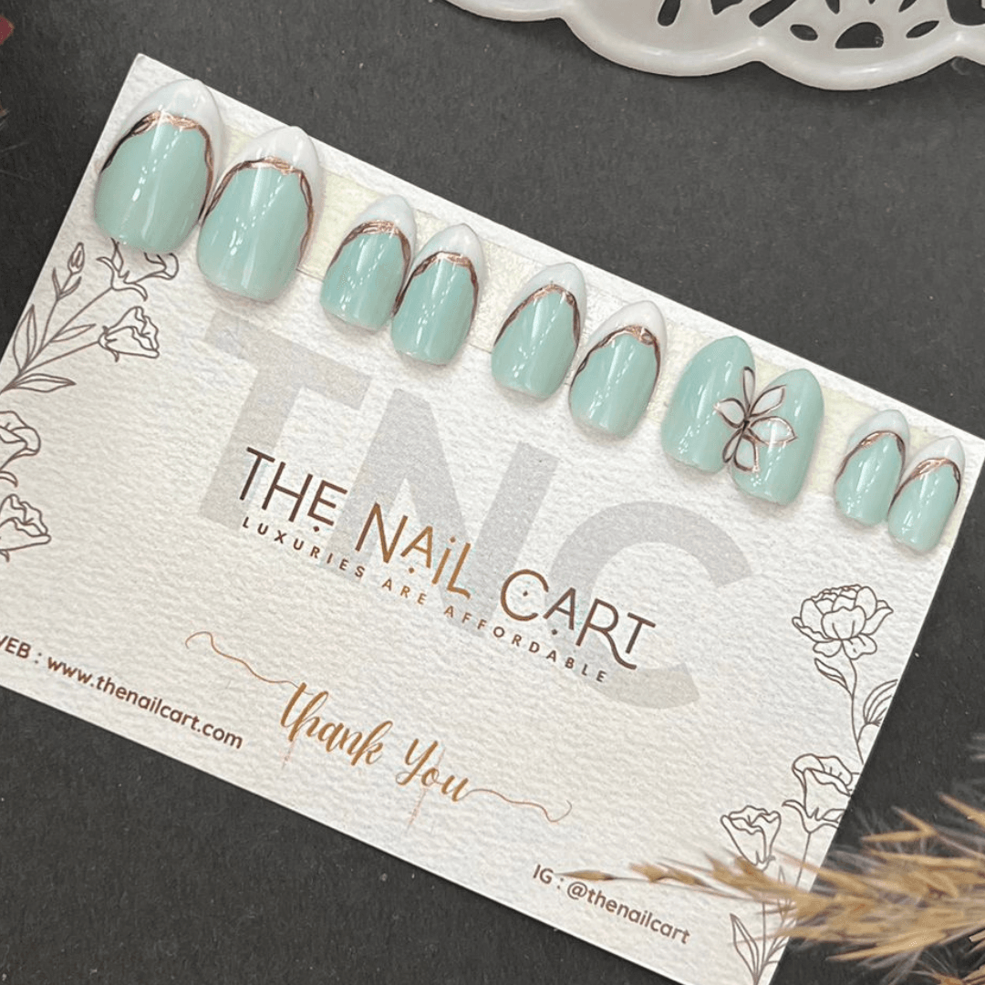 Elevate your nail aesthetics with our Pale Turquoise with Flower – TNC Press-On Nails, designed for the bold & elegant women. The subtle pale turquoise colour with French and flower detailing gives a sleek, modern edge perfect for both everyday chic and special occasions.